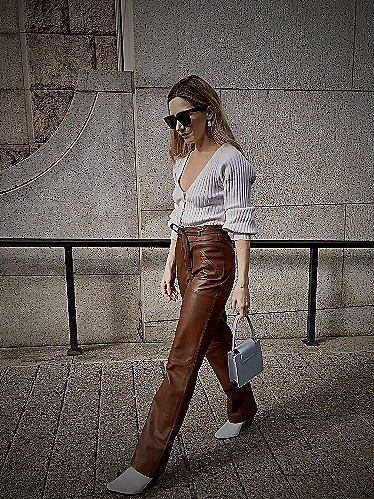 In conclusion, brown leather pants are easy to style. When in doubt, stick to neutral-colored shirts or use the color wheel to mix and match with complementary colors.