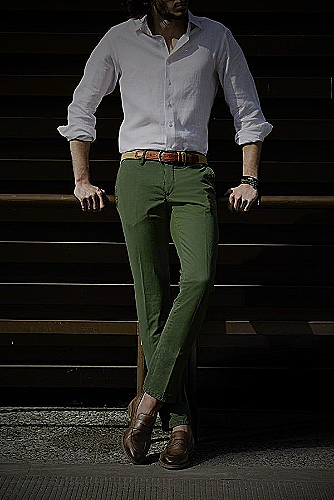 For a night out, opt for a white linen shirt paired with khaki slacks and loafers to stay comfortable but stylish in the warm weather.