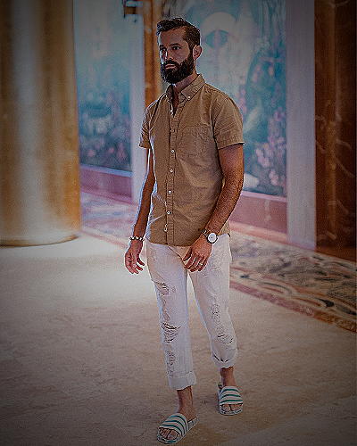 To add sophistication to the outfit, choose a sleek and pricey watch, chic loafers, and stylish sunglasses. Opt for clothing made from linen and cotton materials, providing relief yet comfort in the tropical climate.