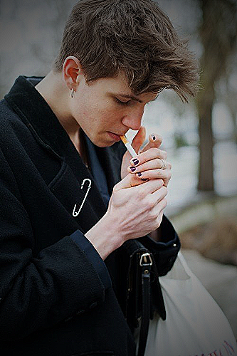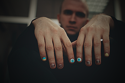 A man breaking gender roles and wearing black nail polish